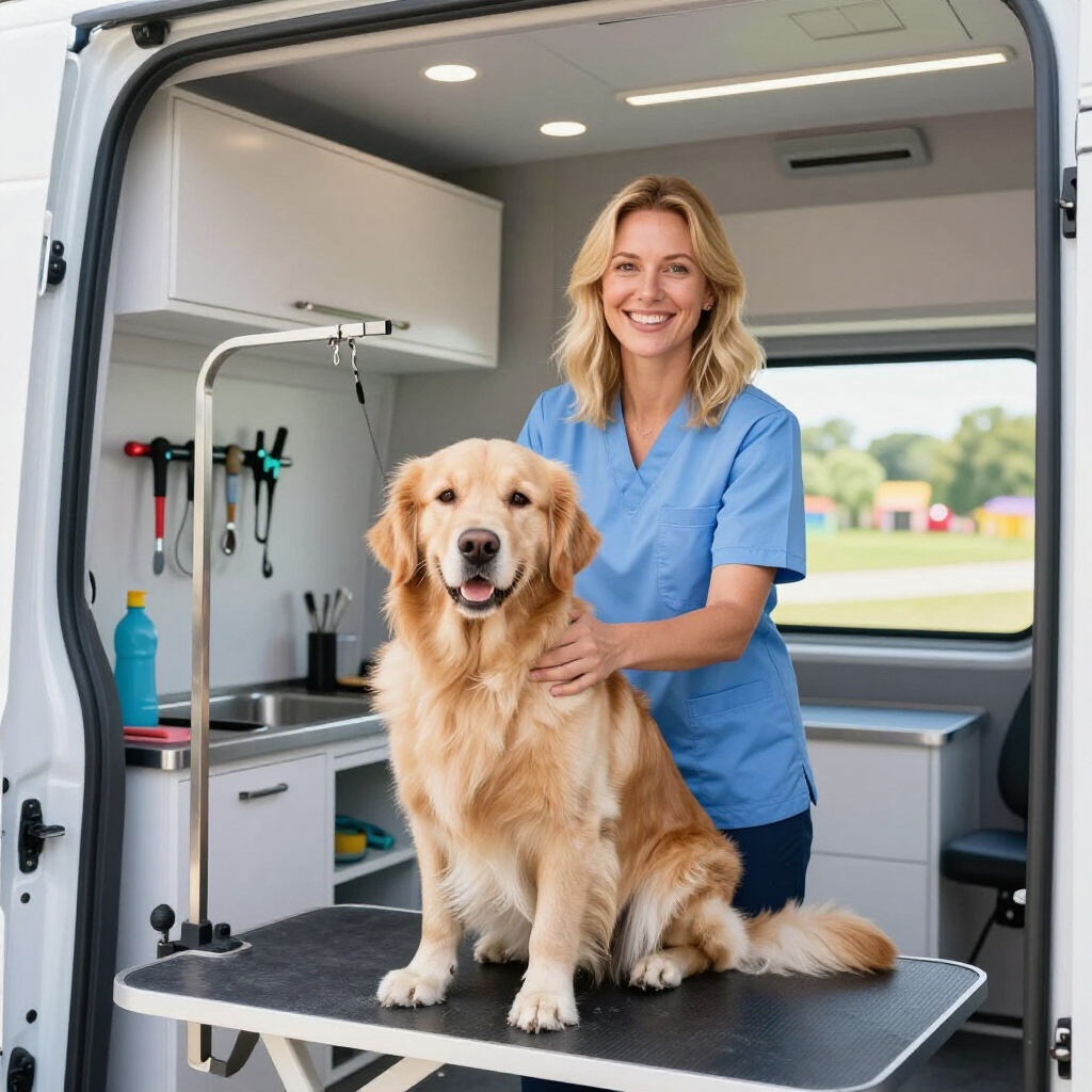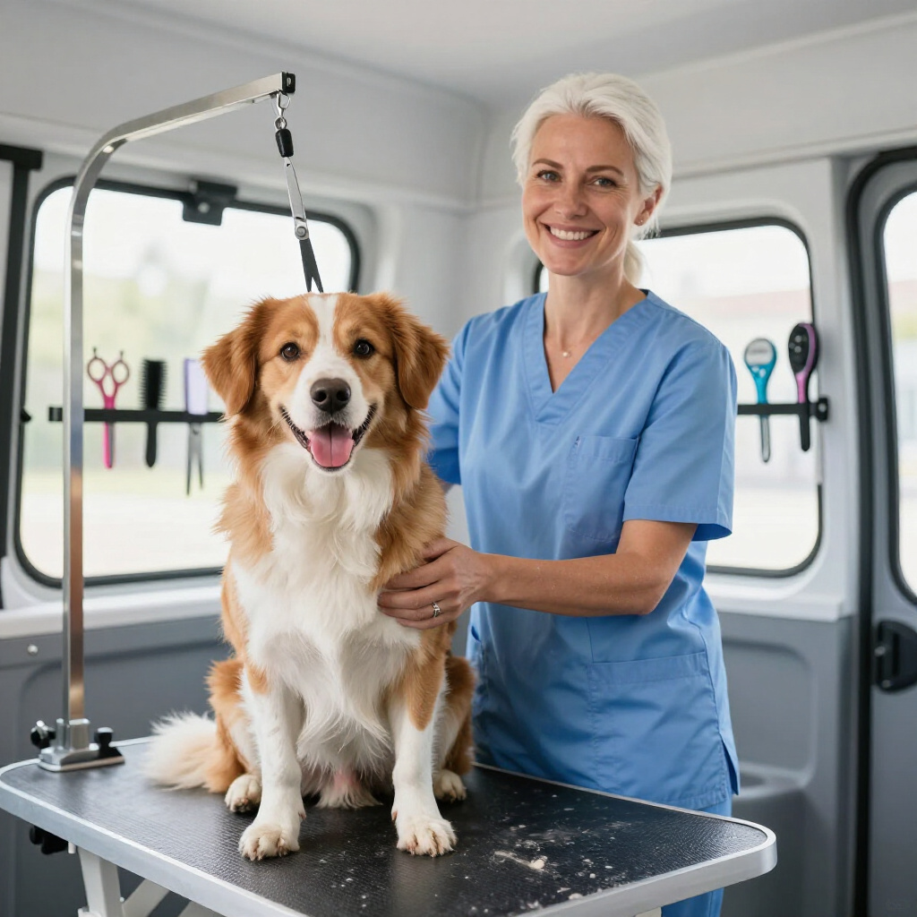 We come to you! Our fully equipped mobile grooming van rolls right to your driveway, so your pup can enjoy a stress-free grooming experience without the hassle of travel.